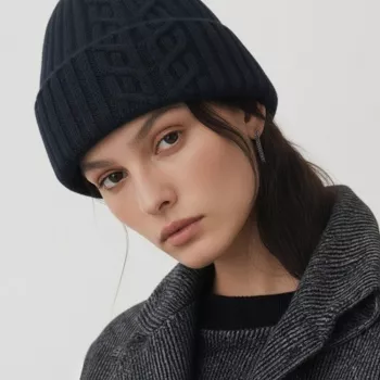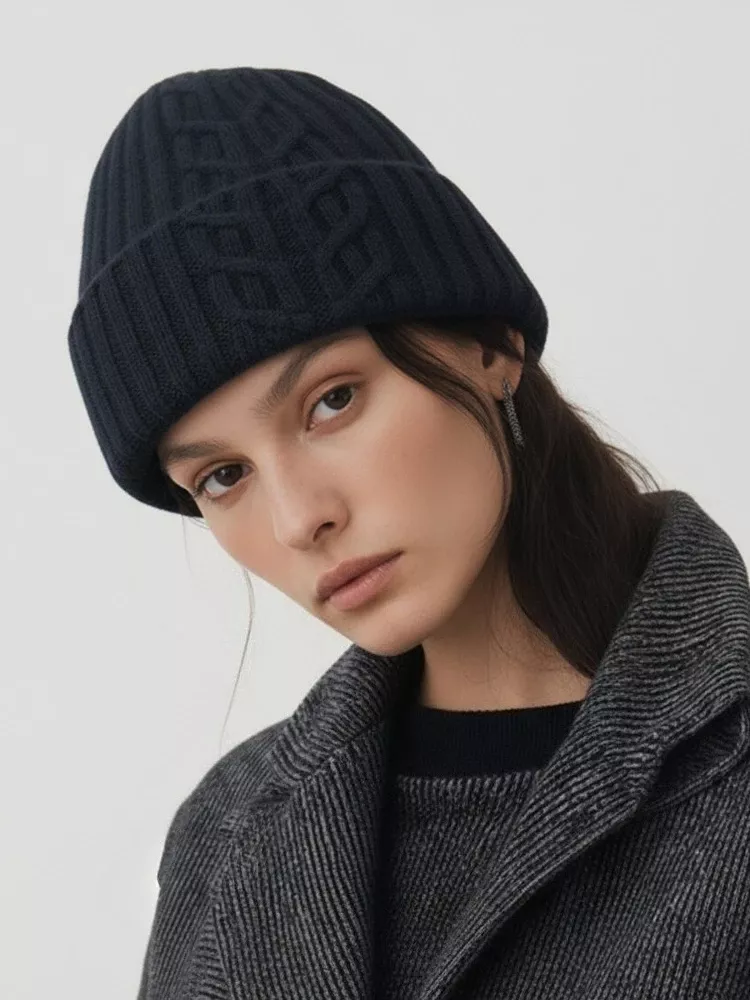 Women’s 100% Cashmere Diamond Knit Beanie – Thick Winter Hat